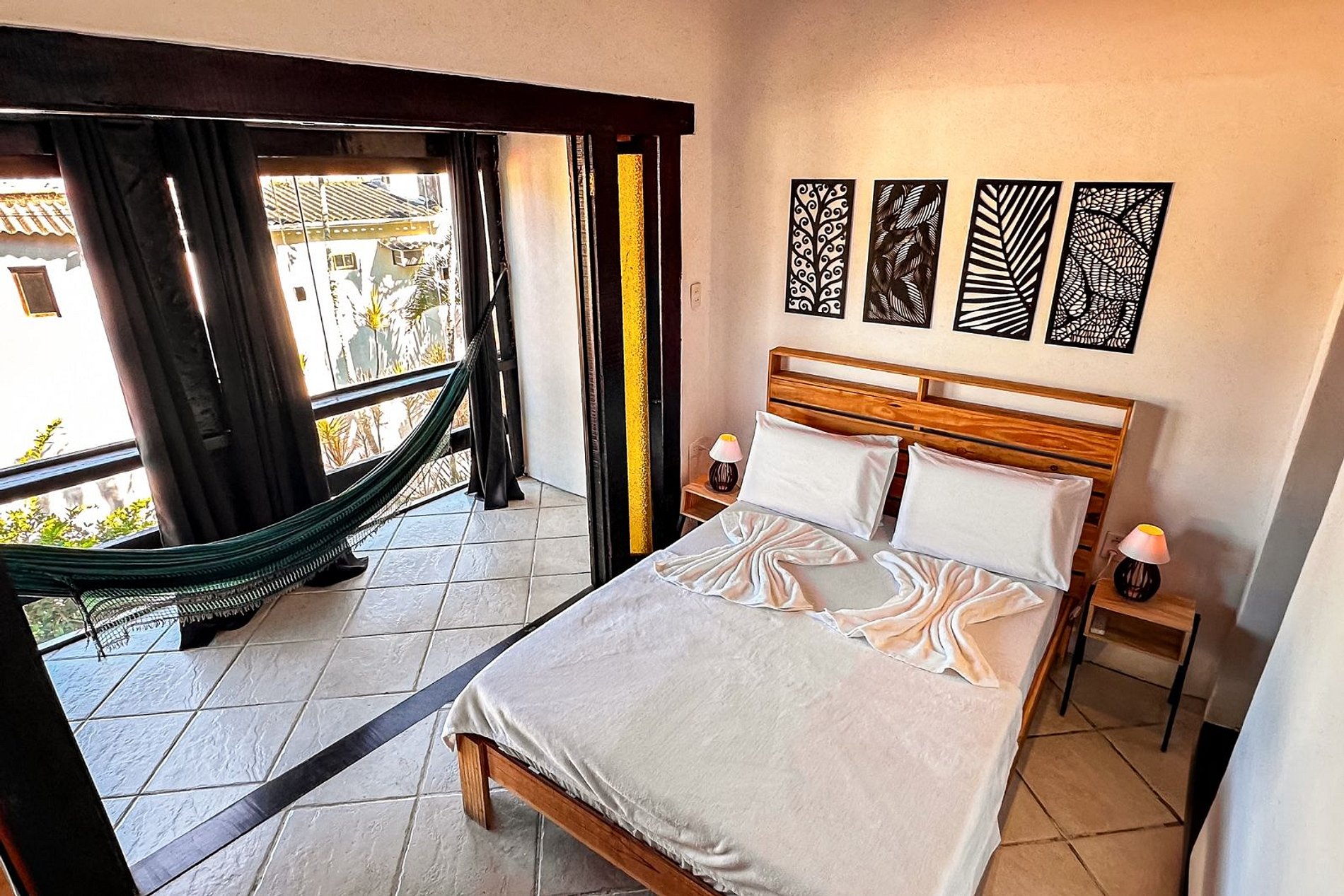Os quartos são aconchegantes e bem equipados, com roupas de cama e toalhas fornecidas. Os hóspedes terão acesso a todas as áreas externas de uso comum da acomodação: varanda, área gourmet, hidromassagem e terraço com vista panorâmica para a Praia dos Anjos. O espaço interno do chalet/suite é totalmente privativo, todas as areas externas são de uso compartilhado com as outras unidades.
