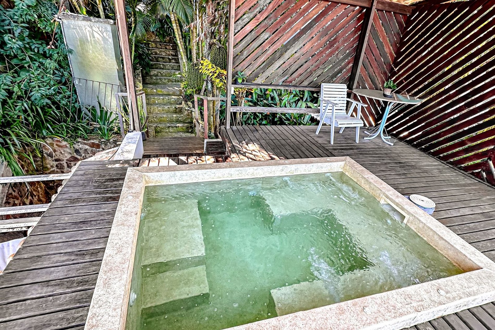 A Suíte Vista Magica é o refúgio perfeito para quem busca acolhimento, beleza e tranquilidade em Arraial do Cabo. Com um design delicado e detalhes pensados para transmitir conforto, o ambiente combina leveza, charme e funcionalidade — criando a atmosfera ideal para casais que desejam viver dias especiais. O quarto conta com uma cama confortável, iluminação suave e elementos rústicos que reforçam a identidade única da Villa Rústica. O espaço é climatizado, possui banheiro privativo moderno e bem iluminado, além de itens essenciais para uma estadia prática e agradável, além de uma varanda com vista pro mar privativa. A localização, a poucos passos da Praia dos Anjos, permite que os hóspedes explorem passeios, trilhas, praias e toda a magia de Arraial do Cabo com facilidade. É a escolha perfeita para quem deseja descansar, celebrar o amor e criar memórias inesquecíveis. Áreas Externas – Villa Rústica, Arraial do Cabo As áreas externas da Villa Rústica foram cuidadosamente pensadas para oferecer uma experiência inesquecível aos hóspedes. Entre jardins delicados, iluminação aconchegante e detalhes rústicos, o ambiente transmite paz, charme e uma conexão especial com a natureza. O grande destaque é o deck com hidromassagem, um espaço que convida ao relaxamento absoluto. Com uma vista panorâmica incrível para a Praia dos Anjos, o local se transforma no cenário perfeito para apreciar o nascer ou o pôr do sol, brindar momentos especiais ou simplesmente renovar as energias após um dia de passeio. A atmosfera intimista, combinada à decoração em madeira, plantas e luzes suaves, cria um refúgio encantador — ideal para casais que buscam romantismo e conforto. À noite, o deck iluminado torna-se um dos pontos mais mágicos da Villa Rústica. Localizada a poucos passos da praia e do porto, a Villa oferece fácil acesso às trilhas, passeios de barco e às belezas naturais de Arraial do Cabo, sem abrir mão da tranquilidade que faz do lugar tão especial.